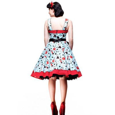En algunas imágenes se muestra con nuestro cancan pin up petticoat (no se incluye en el vestido), se vende por separado y puedes adquirir en nuestra seccion de Tutus – Cancan.